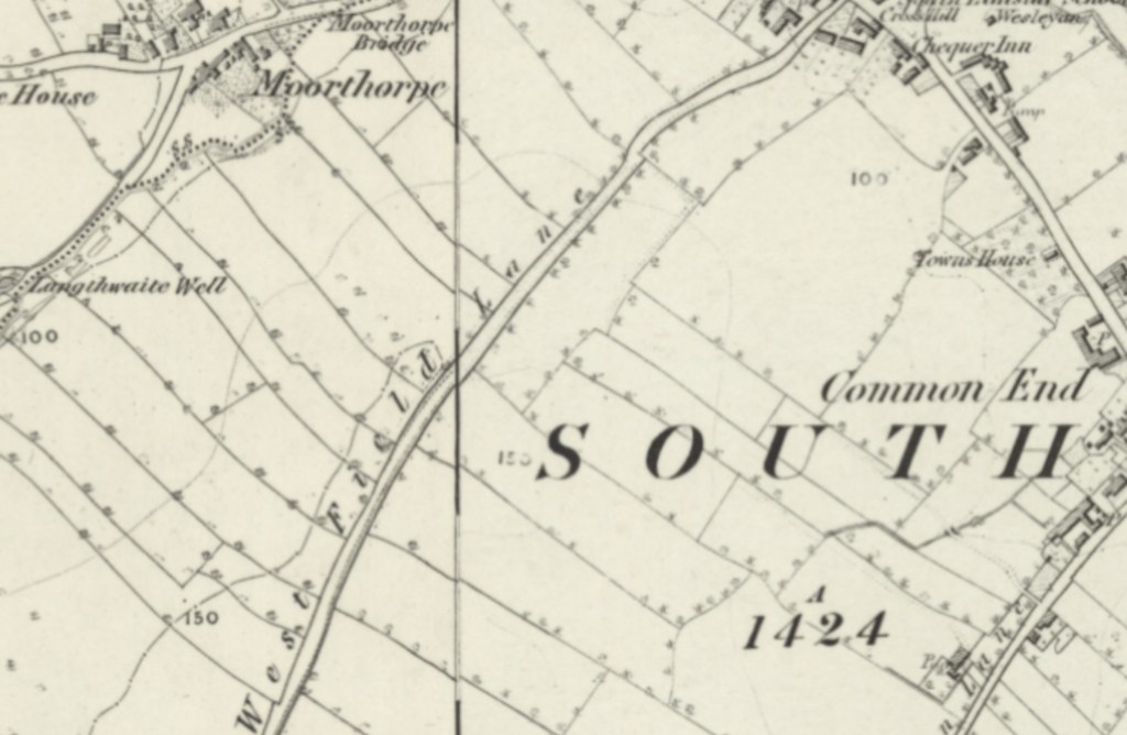 In January 1827 the freehold lands of the late Mary Stocks were auctioned. These lands were extensive and included lot 19, a close of land known as West Field Allotment and lot 20, a close of land called West Field Close, both in the occupation of Mr G. Smith. The path of Westfield Lane today is very close to that of what was West Field Lane, at the time of the 1849 surveyed and 1854 published Ordnance Survey maps. From it’s junction with what is today Barnsley Road, West Field Lane led south west through fields, towards the junction with Broad Lane and then Bradle Car Lane (now Bradley Carr Terrace).