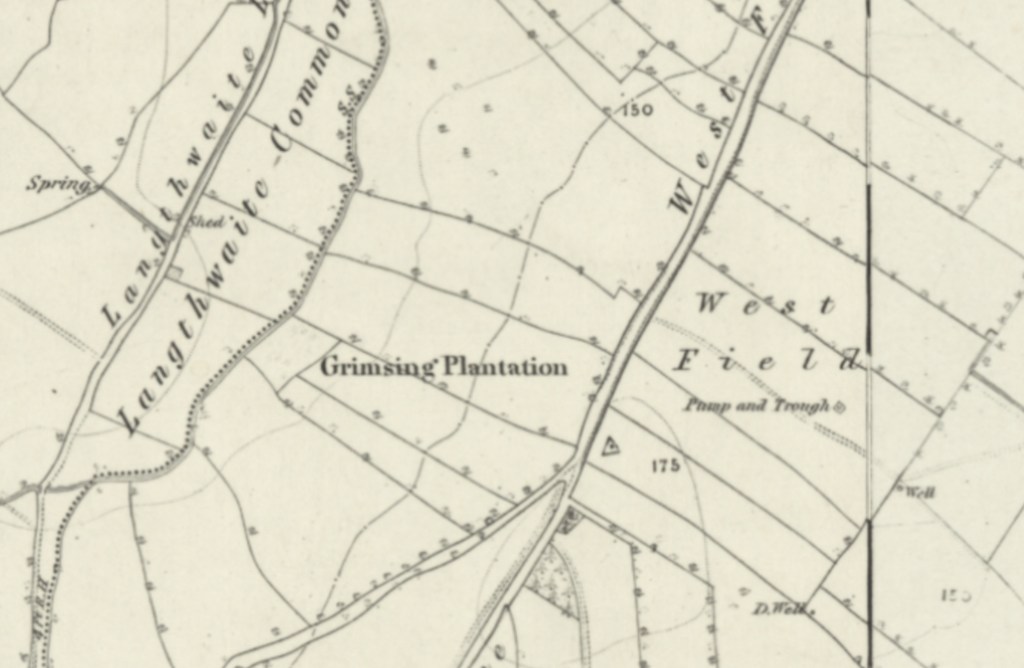 The West Field, to the east side of West Field Lane, contained a well, a draw well and also a trough and pump. On the west side of West Field Lane was the Grimsing Plantation.